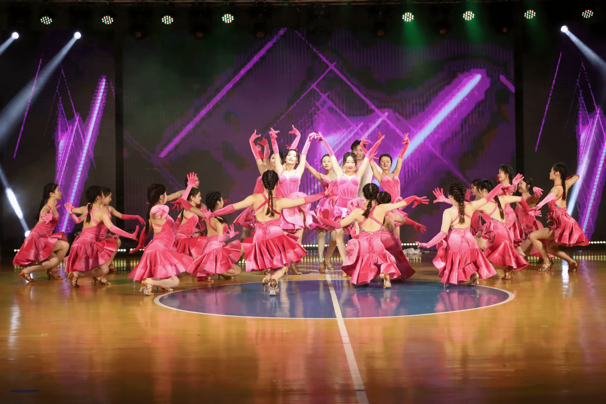 晚会分为“青春逐梦正当时”“不负韶华新征程”两个篇章,共有体育舞蹈、啦啦操、现代舞、爵士舞、街舞及健身操舞等16个节目。来自2021级体育表演专业3个班级90名同学凭借稳健的专业能力和扎实的舞蹈基础,呈现了一场充满活力激情的视觉盛宴,用动感的节拍为青春留下美丽的瞬间。