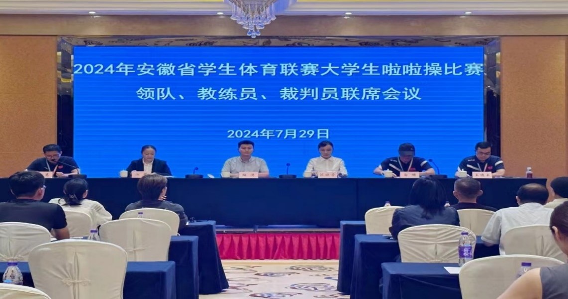 2024年安徽省学生体育联赛大学生啦啦操比赛于7月29-至8月1日在宿州学院举办。本次比赛由安徽省教育厅、安徽省体育局主办,宿州学院、安徽省学校体育协会健美操啦啦操分会承办,宿州市教育体育局协办,安徽省学校体育协会执行。大赛共有来自全省20多所高校近300余名运动员参加。