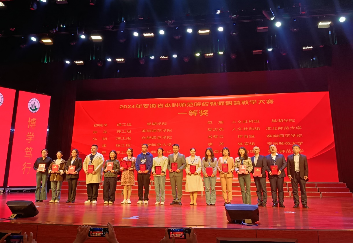 10月25日至27日,2024年安徽省第六届师范院校教师智慧教学大赛决赛在淮南师范学院隆重举行。来自全省众多师范院校的优秀教师汇聚于此,历经激烈角逐,我院教师唐芳和曹益嘉凭借卓越表现,在体育组中脱颖而出,同时荣获一等奖。