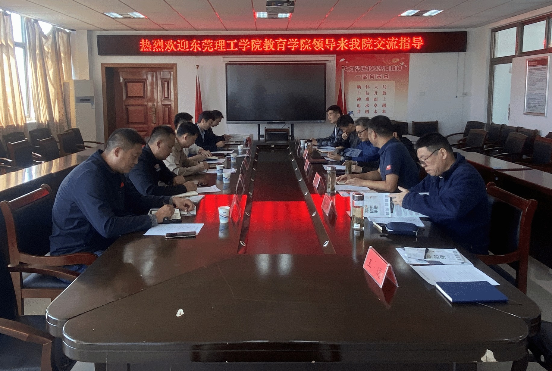 近日,东莞理工学院教育学院(师范学院)调研组一行来伟德国际victor·1946源自调研交流。东莞理工学院教育学院(师范学院)党委书记张伟林、副书记杨帆、体育系副主任王珽珽、公体部副主任李逸涛、体育实践教学中心副主任肖卫和曾志和、王玉超等老师参加了本次调研,我校伟德国际victor·1946源自领导和校体委办、公共体育部、教学办公室、实训实验中心等科室负责人进行了座谈交流。