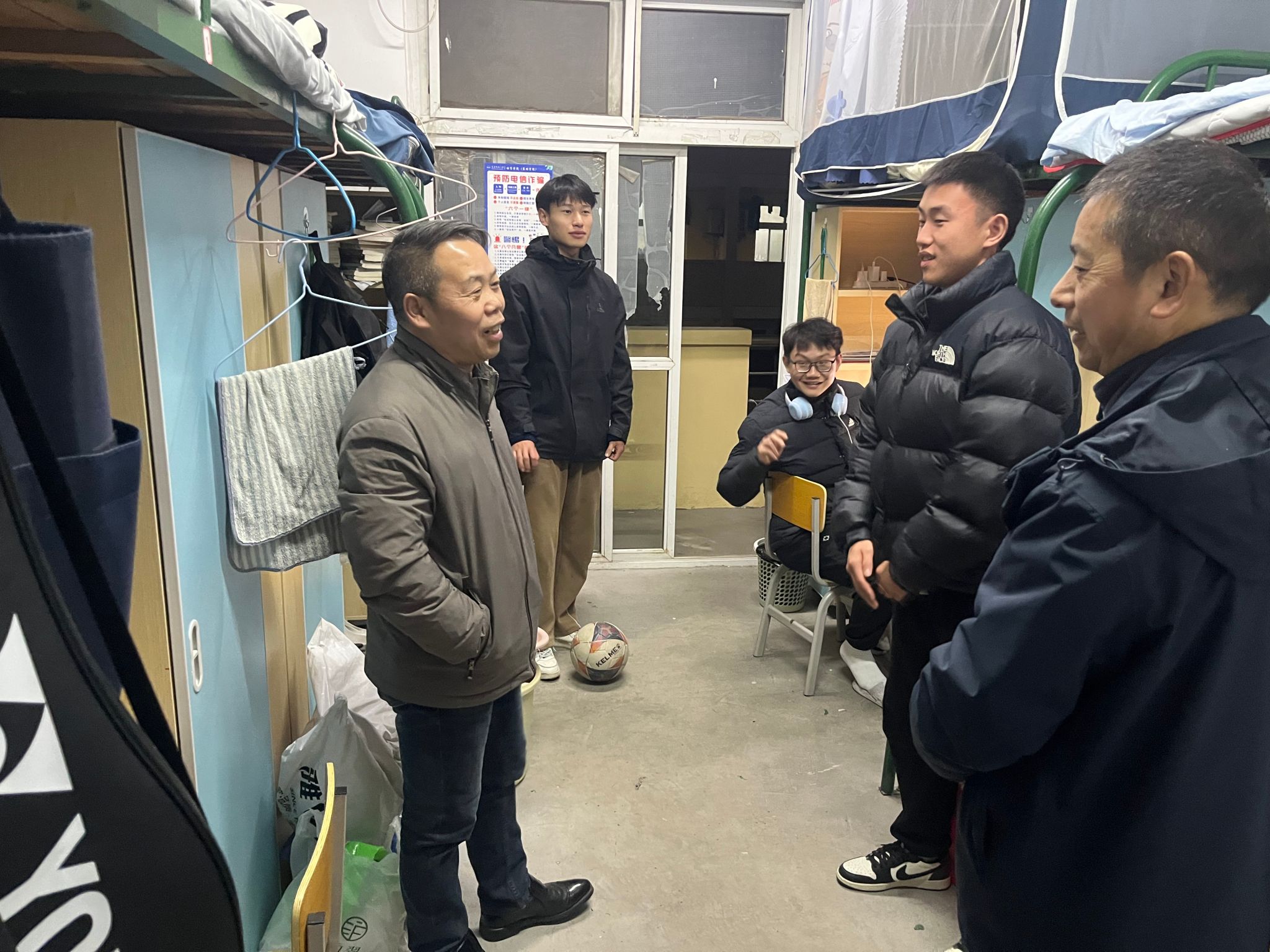 走访过程中,孙明运详细询问了同学们的学习进展、科研任务以及生活情况。他特别关注同学们在学术研究中遇到的困难,鼓励大家保持积极的心态,勇于面对挑战,同时提醒同学们合理安排时间,做到学习与生活平衡。他表示,要多向导师请教学习,开展多种活动来增进师生之间的感情,依靠体育学院,解决学习和生活中的困难。程老师则重点了解了同学们的日常生活等情况,叮嘱同学们要保持良好的作息习惯,并营造和谐友爱的宿舍氛围。