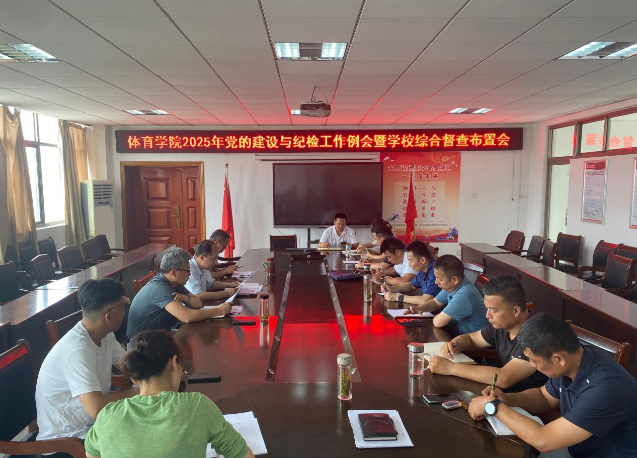 会议传达了学校近期召开的深入贯彻中央八项规定精神学习教育学查改一体推进大会暨党务工作例会精神,学习《八项规定改变中国》、习近平总书记考察河南时重要讲话精神,传达、布置了学习教育等有关工作,并就体育学院近期党的建设、纪检监察重点任务和学校综合督查工作进行安排布置。