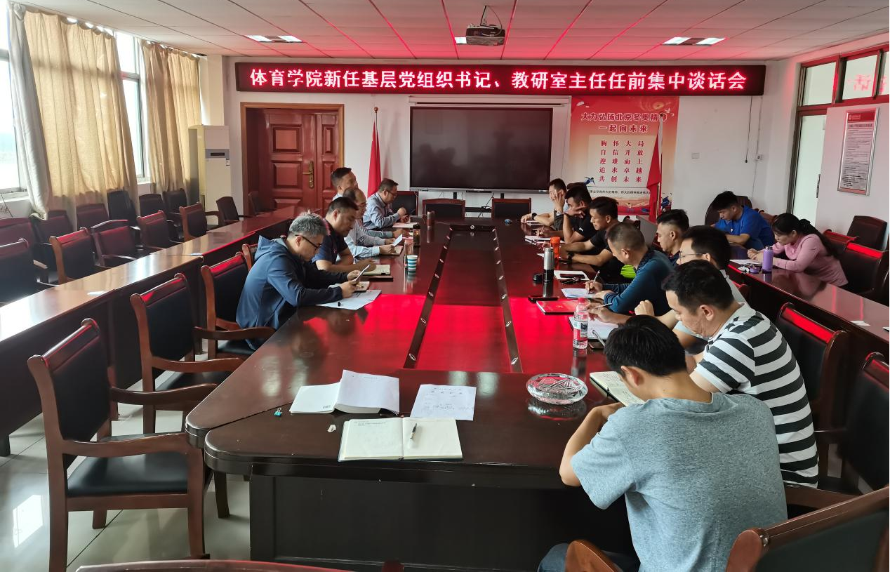 10月15日,伟德国际victor·1946源自在体育馆三楼会议室召开新任基层党组织书记、教研室主任任前集中谈话会。伟德国际victor·1946源自党政领导班子、新一届党支部书记和支委成员、教研室主任参加会议。会议由伟德国际victor·1946源自党委书记王玮主持。