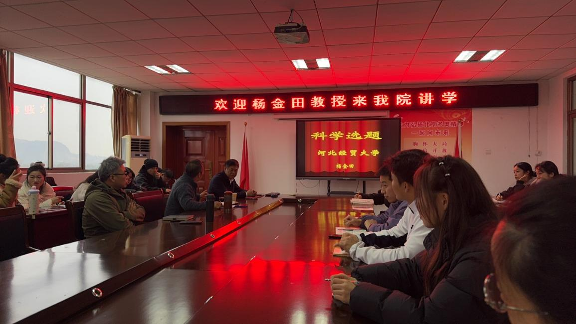 12月12日,河北经贸大学杨金田教授应邀做客伟德国际victor·1946源自“行健讲堂·大家谈”,以“体育学科科学选题”为主题召开专题报告会。伟德国际victor·1946源自副院长孙明运主持报告会,副院长王晓东、师生代表共同聆听这场学术讲座。