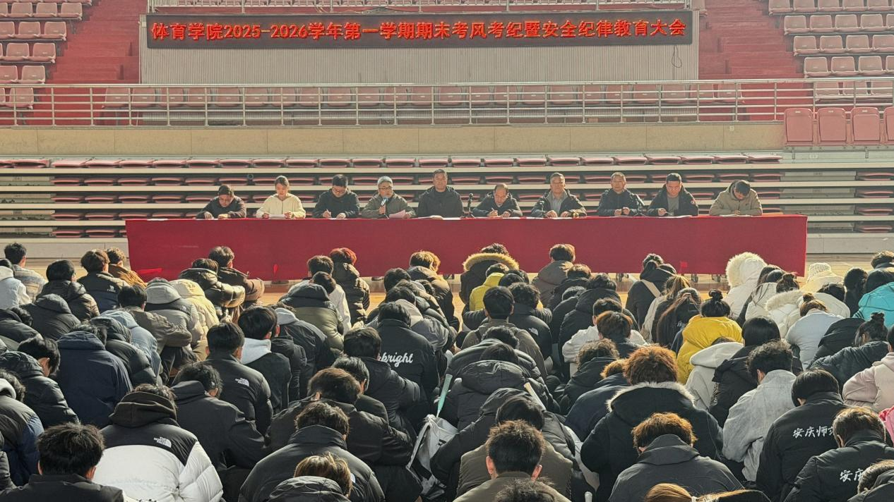 12月17日,伟德国际victor·1946源自在篮球馆召开2025-2026学年第一学期期末考风考纪暨安全纪律教育大会。伟德国际victor·1946源自党政领导、学院团委负责人、教务科老师、全体专职辅导员老师出席会议,学院2023级、2024级、2025级全体本科生及2025级研究生参加会议,会议由学院党委副书记杜百忍主持。