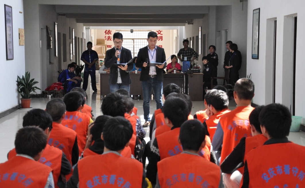 本次活动是应安庆市看守所邀请,以“青春中国梦”为主题的帮教活动。此次帮教对象是看守所里近30名未成年在押人员。为了拉近大学生与这些未成年在押人员彼此间的距离,消除隔阂,我院学生为他们精心准备了丰富多彩的文艺节目。其中有氧舞蹈表演充满青春活力;诗歌朗诵慷慨激昂,震撼人心;太极拳表演柔中有刚,刚中兼柔;经典黄梅曲目更是清新朴实……同学们卖力的演出赢得了现场阵阵掌声。随后,看守所的未成年在押人员也为我们献上了大合唱表演,铿锵有力的唱腔体现了他们积极健康向上的精神面貌。