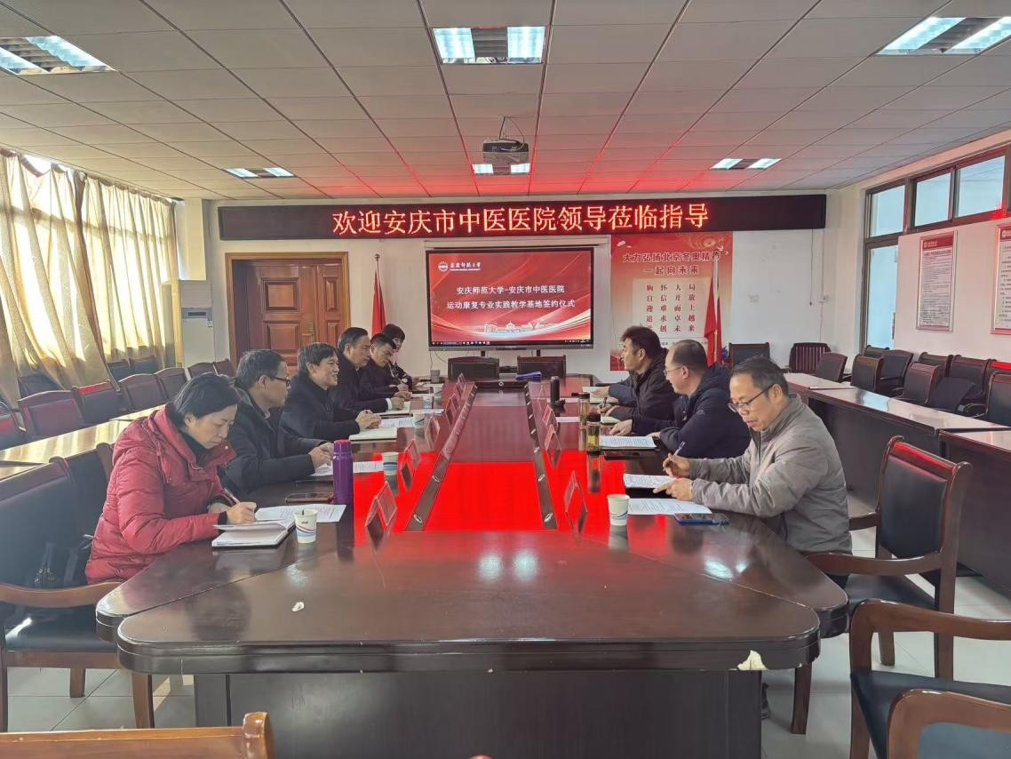 1月14日,安庆市中医医院院长杨晓春、副院长周国保一行来伟德国际victor·1946源自开展调研合作。伟德国际victor·1946源自党委书记王玮,院长周多奇,副院长王晓东、孙明运出席座谈会,运动康复专业相关教师参加并进行交流。座谈会由周多奇主持。