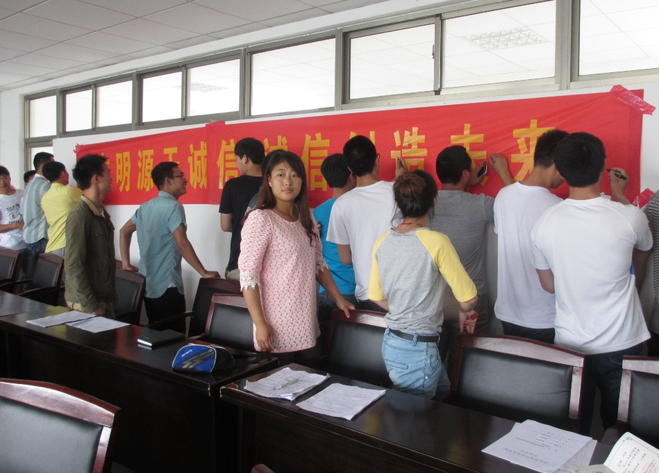 学院学生资助专管老师贾涛在会上宣读了《关于做好2014届生源地信用助学贷款毕业生还款确认工作的通知》,并详细说明了国家开发银行贷款和农村信用社贷款的还款确认以及延期还款的办理事项。会上,大家纷纷向负责贷款还款办理事项的有关同学咨询了如何还款、贷款利息、办理手续等问题。现场气氛活跃。最后,大家纷纷在“文明源于诚信,诚信创造未来”的条幅上签字。