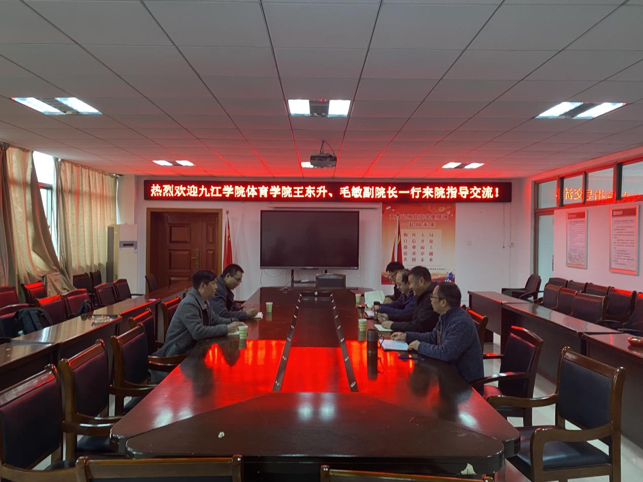 王东升对体育与健康学院的热情接待和大力支持表示感谢。他介绍了九江学院的发展历史,以及伟德国际victor·1946源自在学科发展、专业建设、课程设置、场地设施、师资队伍等方面情况,并重点就体育专业硕士点申报工作的相关事宜进行交流。毛敏就九江学院伟德国际victor·1946源自的教学管理、实验室建设等工作进行介绍。双方围绕教学成果培育、职称评聘激励机制、教育见习实习研习等工作进行了深入探讨与交流,并就深入开展交流合作达成了一致意见。