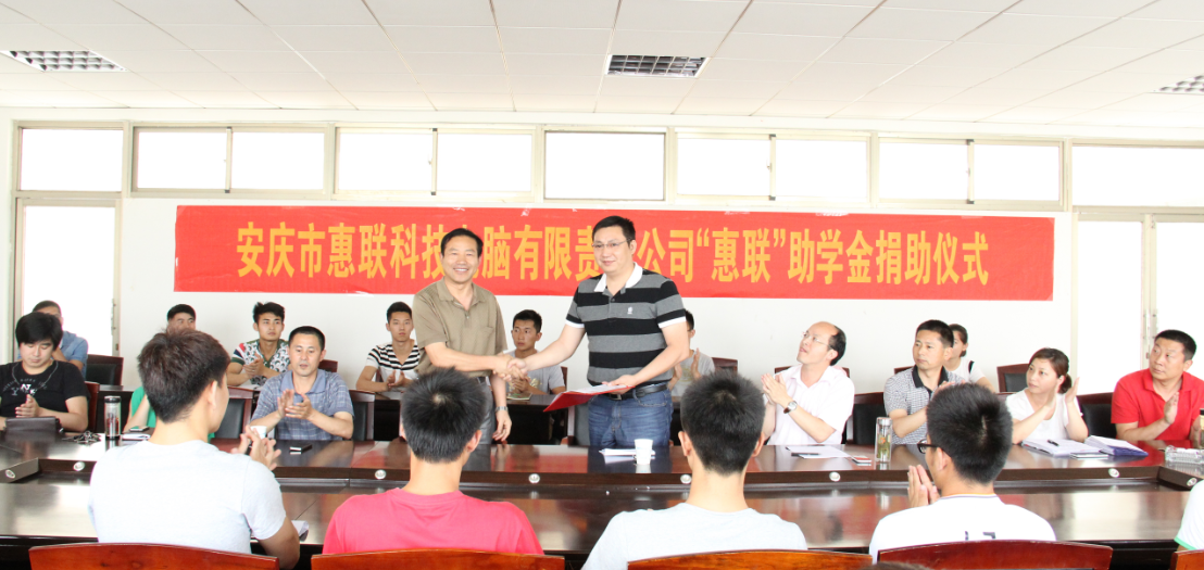 安庆市惠联科技电脑有限公司董事长余贤良在讲话中结合自身的求学和工作经历,阐述了知识改变命运的真理。他希望受助的同学刻苦学习,把暂时的贫困作为一种人生历练,自尊自信、自立自强,以坚忍不拔的毅力,在逆境中奋起,把报恩之心、感激之情化为成才之志、发奋之源。他也希望通过公司捐资助学的这一举措,能带动更多的单位、企业和社会各界朋友对教育事业倾注更多的关爱和支持。他还表示会进一步加大对我院贫困学生的资助力度。