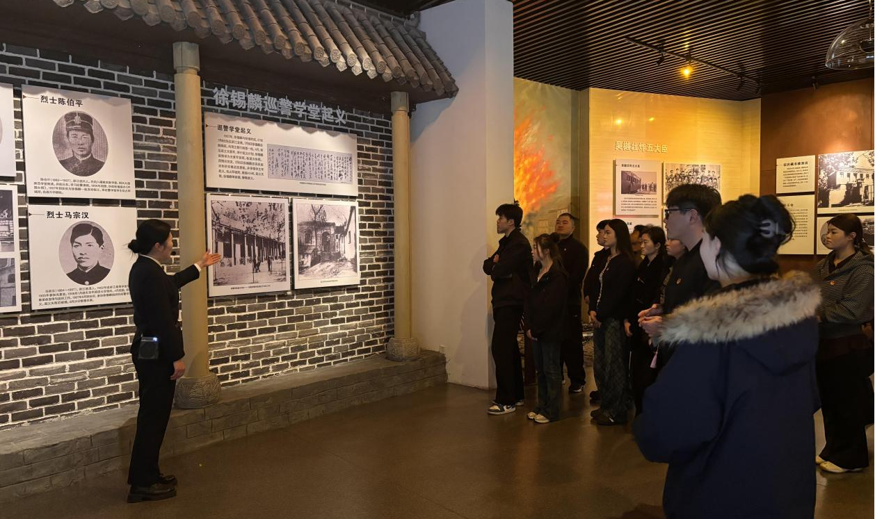在陵园讲解员的带领下,同学们有序瞻仰烈士墓区,走进革命历史纪念馆,通过珍贵的文物、照片与文字资料,聆听徐锡麟、陈伯平、马宗汉等革命先烈的英勇事迹,重温那段波澜壮阔的峥嵘岁月。大家驻足凝视、认真聆听,在沉浸式学习中感悟革命先辈的家国情怀与奉献精神,接受了一场深刻的红色精神洗礼。
