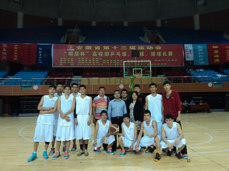 5月19日,安徽省第十三届运动会高校部篮球赛在安庆桐城市体育馆胜利闭幕。我校体育教育专业的12名同学在林秋菊、邓龙两位老师的带领下,首次组队参加了此次大赛。并在比赛中不畏强手,顽强拼搏,最终成功晋级了前八强。