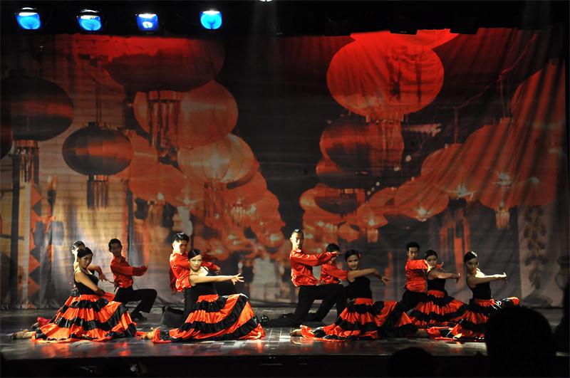 伴着低沉婉转的旋律,晚会在气势磅礴的斗牛舞中徐徐拉开帷幕。演员火红的舞裙在闪烁的灯光中摆动,好似一团团正在燃烧的旺火,这正代表着我院学子对于生活的无限热情。端庄华丽的华尔兹不管是舞态还是步伐,无一不精准到位。充满青春活力的有氧舞蹈《爱的主打歌》,糅合高难度动作和动感音乐的竞技健美操充分展示了体院学子的健、力、美。激情的桑巴,活泼的恰恰,柔情缠绵的伦巴,欢快的斗牛都让我们大饱眼福。歌曲演唱《海阔天空》更是为本次晚会注入了新的血液,高亢浑厚的嗓音使人流连陶醉。有人说爱情应该如狂风暴雨般轰轰烈烈才酐畅淋漓,又有人说爱情应该像江南细雨一样温婉动人才美,情景舞剧《你最珍贵》完美的阐释了爱情的真谛。极具武术阳刚之美和舞蹈阴柔之美的《剑舞》赢得了场下观众热烈的掌声,将晚会的气氛推向了高潮。