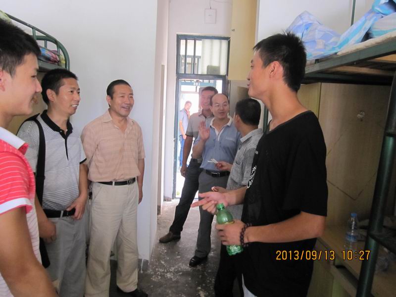 为践行党的群众路线教育实践活动,9月13日上午,伟德国际victor·1946源自党总支书记吴毅安,副书记韦长发,副院长章翔、周多奇在辅导员老师程启平的陪同下,带着对2013级新生的牵挂,先后来到新生入学报到点以及女生4号楼和男生6号楼新生宿舍,深入了解学院2013级新同学的生活和思想状况,并向他们表示热烈的欢迎和诚挚的问候。