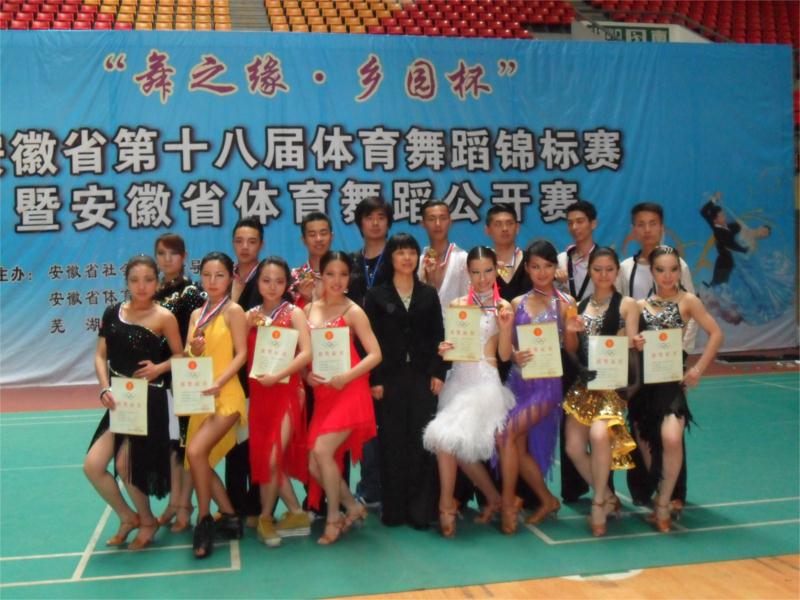 4月29日-30日,安徽省第十八届体育舞蹈锦标赛暨安徽省体育舞蹈公开赛在芜湖市举行,我院2009级、2010级和2011级体育表演专业体育舞蹈专项班的学生,在夏尚群、潘磊两位老师的带领下,参加了本次比赛。经过顽强拼搏,最终我院参赛同学创造了历史最佳战绩。无论是获奖等级还是获奖数量,均远远领先于参赛的省内其他同类专业院校。其中庞晨骏、李晓兰同学荣获锦标赛专业院校A组拉丁舞第一名、A组单项牛仔第一名和公开赛青年A组第一名;詹超、汤茹婷同学荣获锦标赛专业院校C组拉丁舞第一名;罗平、张艺茹同学荣获锦标赛E组单项伦巴第一名及公开赛青年B组第一名;曾秋炜、程飞红同学荣获锦标赛D组单项恰恰第一名;付宇航同学荣获公开赛巾帼组第一名。