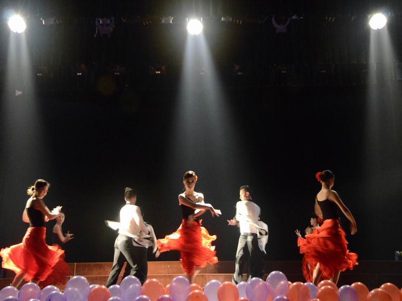 音乐声响,大幕顿开。舞台上身着华美彩裙的姑娘们轻盈曼舞,扭动纤腰,衣袂飘舞,充满异国情调的斗牛舞拉开了晚会的华美帷幕。