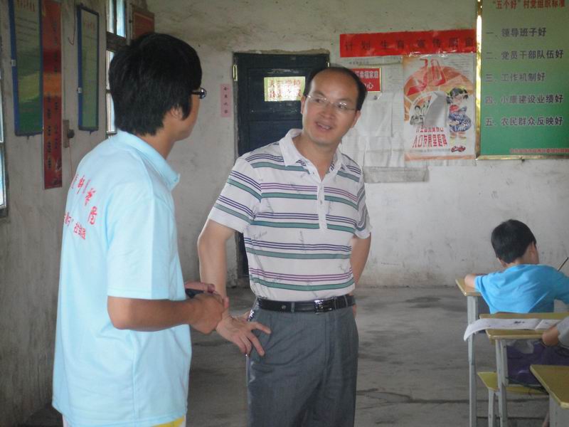 7月3日上午,学院党总支副书记韦长发在院团总支副书记鲁雷和汪洋老师的陪同下顶着炎炎烈日来到大龙山镇百花村立新小学,慰问我院暑期“三下乡”社会实践志愿者服务队的全体同学,听取了大家的工作汇报,并代表院党政领导向“三下乡”的同学送去了矿泉水和水果等慰问品。