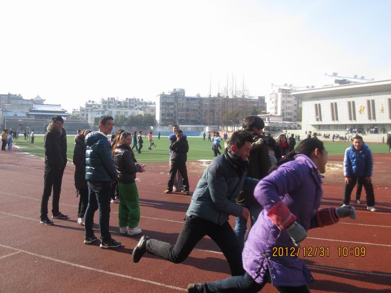 此次主题团日活动共有五个流程,首先是热身活动,通过“贴烧饼”,“大树与松鼠”和两人三足比赛这三个小游戏,让我院学生和安庆一中的同学尽快熟悉起来,达到“破冰”的效果,为接下来的活动奠定基础。游戏中,同学们都表现得非常活跃,连一中的指导老师都忍不住参与其中。热身活动结束后,进行了第二项活动——才艺表演。我院同学献上了精心准备的相声、舞蹈和歌唱节目,赢得了在场同学的阵阵掌声。其中的有奖问答环节更是将活动的气氛推向了高潮,同学们争先恐后地回答主持人提出的问题,兴高采烈地拿着自己赢得的奖品。在欣赏完精彩表演后,在安庆一中同学的引导下,我们进行第三项活动——重“新”游安庆。从小吃、风景、文化等方面介绍安庆,带同学们新年认识新安庆。第四项活动,是本次活动的主题活动——穿越障碍,让同学们在比赛中用“心”体验“新”同学之间的友谊和默契,游戏后的分享环节更是将活动推向了另一个高潮,大家争相发言,说出自己的想法,然后指导老师让我们称赞自己的伙伴,再称赞自己,最后让大家一个接一个把大拇指接在一起,然后一起大声地喊出:2013,我来了!那声音是那么坚定,那么响亮。活动最后一项是放飞梦想。同学们写下了自己的新年愿望和人生理想,贴在心愿墙上,全体活动参与人员合影留念。