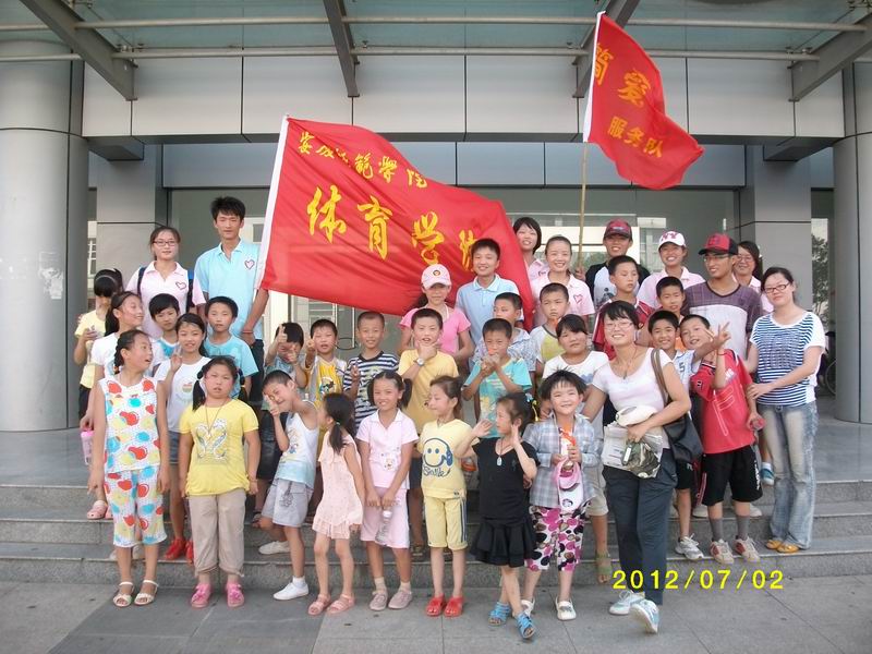 夕阳映红了孩子们的一张张笑脸,此次大学校园之行在一片欢声笑语中步入尾声……,整个参观和游戏过程持续了两个多小时,活动结束后,全体队员和同学们在体育馆集体合影留念,队员们再把各位同学安全的送回家中。结束一天的暑期社会实践生活,11名志愿者脸上都带着疲惫,但看到自己的工作给这些需要关爱的留守儿童带来快乐和心灵的呵护,收获让每位队员的内心都充盈着幸福和甜蜜。(赵瑞)