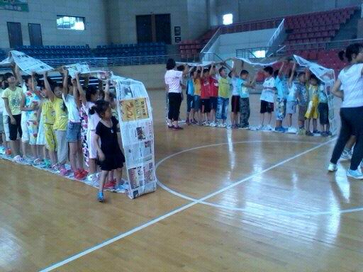 因天气炎热,主要带同学们参观了我校的体育馆,看到木地板的篮球馆、塑胶跑道的室内田径馆、pu质地的羽毛球馆、排球馆以及齐备的健身器材,孩子们兴奋不已。参观完体育馆后,在服务队志愿者的带领下,同学们还进行了“猫和老鼠”和“无敌风火轮”两项素质拓展游戏。在“猫和老鼠”游戏中,要求各位同学在游戏过程中要明确自己的位置,同时遇事要灵活多变。而“无敌风火轮”游戏的主要意义在于培养同学们的全局意识,培养系统思考、计划和组织能力,认识到团队合作的意义,让同学们在生活中学会竞争与合作,学会理解与总结。
