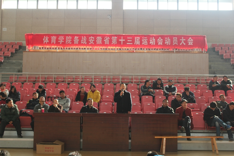 12月5日下午,伟德国际victor·1946源自在体育馆隆重举行备战安徽省第十三届运动会动员大会。伟德国际victor·1946源自全体党政领导出席了大会,伟德国际victor·1946源自全体教师和伟德国际victor·1946源自2011级、2012级全体同学参加了大会。动员大会由副院长章翔主持。