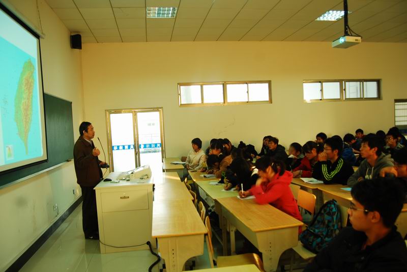 吴书记首先从走向大洋的门槛——台湾的地理位置开始谈起,为大家介绍了台湾的面积、人口、景点等基本概况。他带大家欣赏了我国东部的最高峰——玉山;见识了既有刀削斧劈的万丈深渊,又有银链玉白飞瀑的太鲁阁峡谷;还有从亚热带的阔叶林到寒带的针叶林都有的阿里山森林。美丽的台湾风光让同学们兴奋不已。接着,吴书记从台湾的历史谈到台湾问题的由来,从1544年葡萄牙人航海登陆台湾到1885年的台湾建省,从1894年的日本甲午战争到1947年的二二八事件,再到如今台湾的现状,使大家了解了台湾不平凡的经历,看到了台湾的进步和发展,也看到了仍然面临的一些需要解决的问题。最后,吴书记让大家领略了台湾的风土人情。