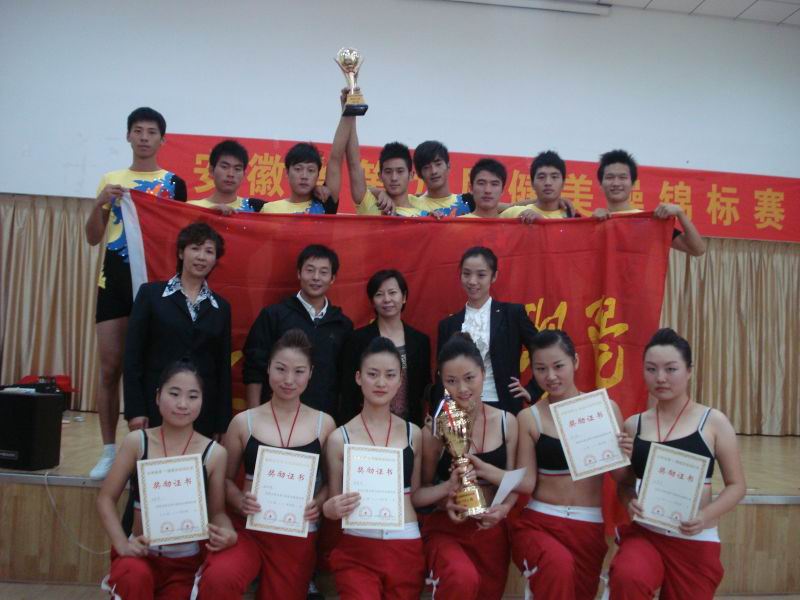 10月22日—23日,由省体育局主办、省健美操协会承办的安徽省第九届健美操锦标赛在省体育运动职业技术学院隆重举行。我校伟德国际victor·1946源自运动健儿在王云辉老师的带领下,经过精心准备和顽强拼搏,在本次比赛中获得了三金两银的优异成绩。其中杨阳同学获得男子单人项目竞技组第一名,焦健、杨阳、林伟伟同学获得三人项目竞技组第一名,吴鹏程、陈建健,赵浩杰、丁立、方锡球、林伟伟同学获得集体六人项目竞技组第一名,李皖、高莹莹、汪令娟同学获得三人项目大众组第二名,吴梦雯、董敏俊、华云菲、李皖、高莹莹、汪令娟同学获得集体六人项目大众组第二名。这是我校连续四年在安徽省健美操锦标赛中取得的骄人战绩。