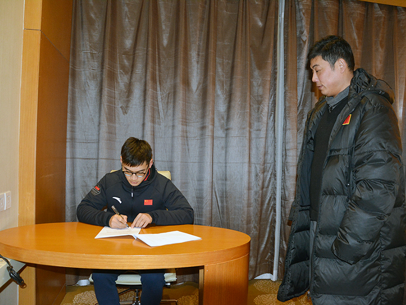 慰问结束后,为了让沈俊鑫同学全心全意备战2022年北京冬奥会,同时能顺利完成学业,学院送考上门,最终在专业老师的监考下,沈俊鑫同学顺利完成了本学期期末相关课程的考试。(文/图 程启平)