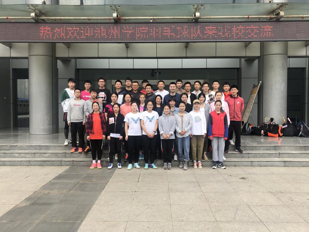 4月17日,池州学院羽毛球队在教练员戴园园和赵永兴老师带领下来我校开展交流比赛。