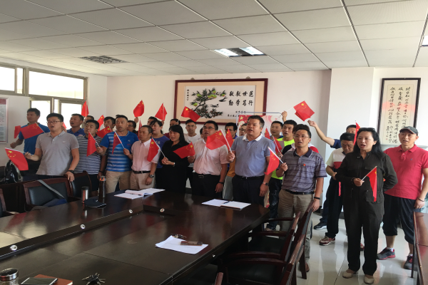党委副书记高栋梁带领全体党员面对鲜红的党旗,再一次举起了右手,重温入党誓词。“我志愿加入中国共产党,拥护党的纲领,遵守党的章程……”,铿锵的誓词,坚定的承诺,让每一位党员的心灵再一次被震撼、洗礼和感动,更加坚定了对党忠诚以及为共产主义事业奋斗终身的决心。