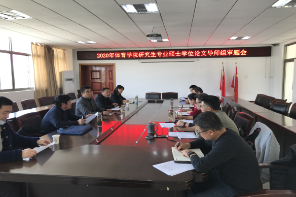 为进一步促进我院研究生学位论文工作的良好开展,强化研究生培养过程管理,4月8日下午,学院在体育馆会议室召开了2019级体育硕士专业学位论文导师组审题会。学院全体硕士生导师参加了会议,会议由学院院长章翔主持。