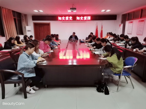 王开友首先介绍了中国共产党成立99年来领导中国人民走过的波澜壮阔的奋斗历程,取得的举世瞩目的辉煌业绩,对世界产生的重大影响。让全体学生党员了解到中国共产党历经沧桑,经历了初创时的艰难、北伐战争的洗礼、土地革命的探索、抗日战争的硝烟、解放战争的炮火,又历经了社会主义改造和建设、改革开放,中国共产党无论是革命、建设,还是改革开放,无论是胜利、挫折,甚或失败,都是党为实现理想信念而奋斗的历程。无数事实雄辩地证明,中国共产党是一个伟大、光荣、正确的党。最后他希望全体党员同学们一要认清历史事实,更好地把握现在中国的发展大势,树立自己的使命意识,自觉地把自己的志向和国家民族的命运紧密联系起来,实现个人成长和中华民族伟大复兴的有机结合;二要牢记初心和使命,牢固树立“四个意识”,坚定“四个自信”,做到“两个维护”,始终在思想上政治上行动上同以习近平同志为核心的党中央保持高度一致,只争朝夕,不负韶华,为中国特色社会主义事业奋斗终身。
