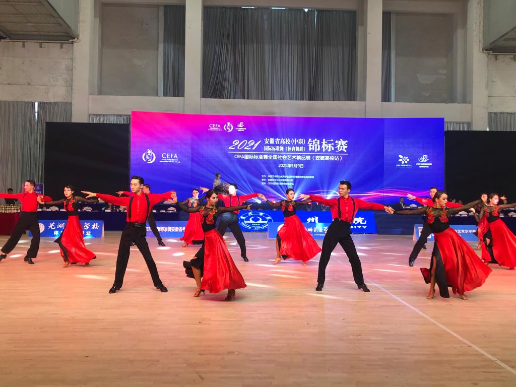 5月9日,安徽省高校体育舞蹈锦标赛暨CEFA国际标准舞全国社会艺术精品展(安徽高校站)在安徽师范大学花津校区体育馆举行。我校代表队在夏尚群、潘磊、李伟志、陈骏老师的带领下,团体表演舞《飘扬》脱颖而出,获得团体表演赛冠军;其他组别项目共获得6项第一名、10项第二名、16项第三名的优异成绩,为我校赢得了荣誉。