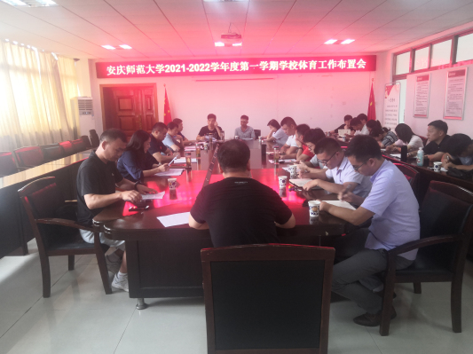 9月13日下午,校体委在龙山校区体育馆三楼会议室召开2021-2022学年度第一学期学校体育工作布置会。校体委副主任委员、伟德国际victor·1946源自院长章翔,学生处副处长华秀梅,校医院、各学院学校体育工作负责老师,伟德国际victor·1946源自公共体育部、各竞赛项目负责人参加会议。会议由校体委委员、伟德国际victor·1946源自副院长林秋菊主持。