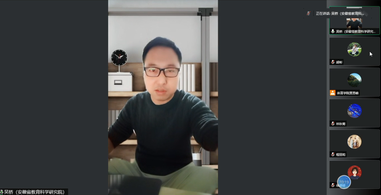 5月15日晚,“国培计划(2021)-安徽省体育音乐美术等薄弱学科教师深度研修项目”研修班(小学体育)第一期跟岗实践研修线上总结会议顺利召开。安徽省教育伟德国际院吴桥主任、合肥市庐阳区体育教研员吴永奇主任、合肥市瑶海区体育教研员李亚琼主任、bv1946伟德章翔院长、全体国培学员跟岗导师出席会议,承训单位领导、项目组全体成员、全体学员参加会议。会议由伟德国际victor·1946源自副院长林秋菊主持。