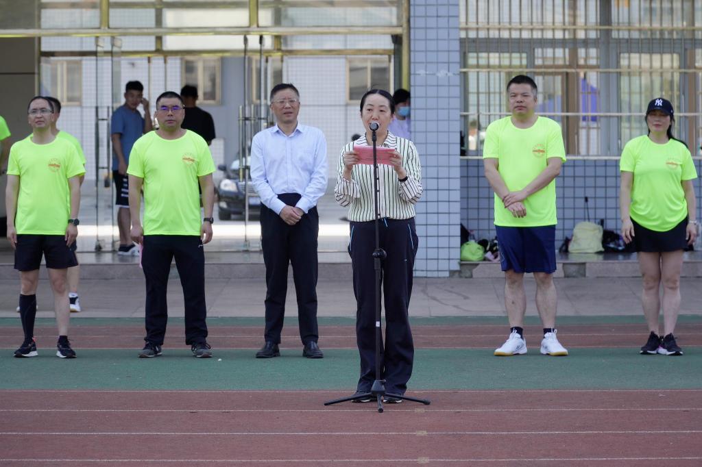 闵永新宣布首届校园马拉松赛开幕。