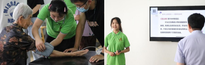 “子女的赡养义务赡养扶助的主要内容是指在现有经济和社会条件下,子女在经济上应为父母提供必要的生活用品和费用,在生活上、精神上、感情上对父母应尊敬、关心和照顾。”由于老年人维权能力与法律意识较弱,成员们还特意带来了法律知识普及小课堂,向老人们介绍了赡养权、婚姻自由权等法律知识,加强其法律意识。
