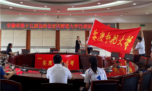 7月14日,学校举行安徽省第十五届运动会bv1946伟德代表团出征仪式。校党委常委、副校长、校体委副主任吴琼出席仪式并向代表团授旗。