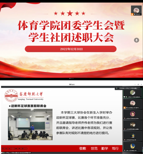 此次述职评议采用PPT汇报展示和书面述职相结合的方式进行。会上,院学生会主席团成员和各学生社团负责人依次就本年度思想引领、组织建设、活动成效等方面进行了汇报,全面总结了一年来组织工作的整体情况和存在问题,并提出了下一年度工作安排。(编辑、摄影:高伟飞 审核:王玮)