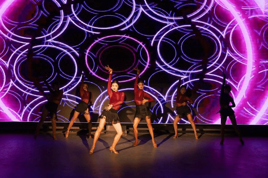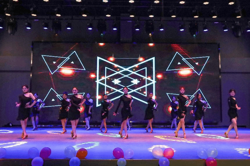 伦巴、恰恰、竞技健美操轮番上场,伴随着绚丽的灯光,表演人员的舞蹈节奏根据歌曲的切换快速变化,来自2022级体育表演专业(1)班的舞蹈《燃》点燃了全场的气氛,观众们纷纷挥舞起手中的光灯,为他们欢呼。