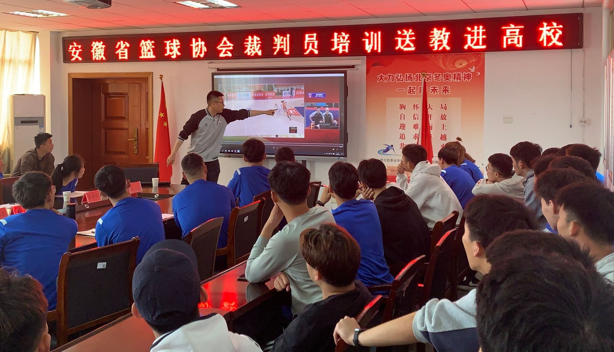林秋菊致欢迎辞。她首先对出席开班仪式的各位领导和嘉宾表示热烈欢迎,并介绍了学校和学院发展取得的丰硕成果。她表示,安徽省篮球协会将本次培训活动安排在我校举行,既是信任更是责任,学院将精心组织、周密安排,确保培训圆满完成,也希望安徽省篮球协会持续关注bv1946伟德篮球学院的发展,并给予大力支持和帮助。刘雅茹介绍了送教进高校活动的目的和安排,对培训期间的学习纪律提出要求,并宣布安徽省篮球协会裁判员培训送教进高校活动在bv1946伟德开班。
