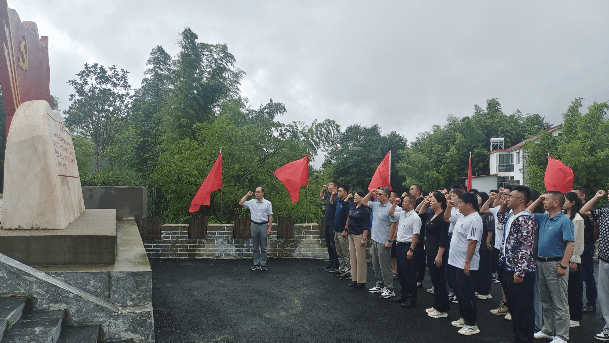 在革命遗址前的广场上,学院党委副书记、纪委书记王玮带领大家怀着无限崇敬的心情,面向鲜红的党旗,庄重地紧握右拳,一字一句、铿锵有力地重温入党誓词,进一步牢记初心使命、锤炼党性修养。