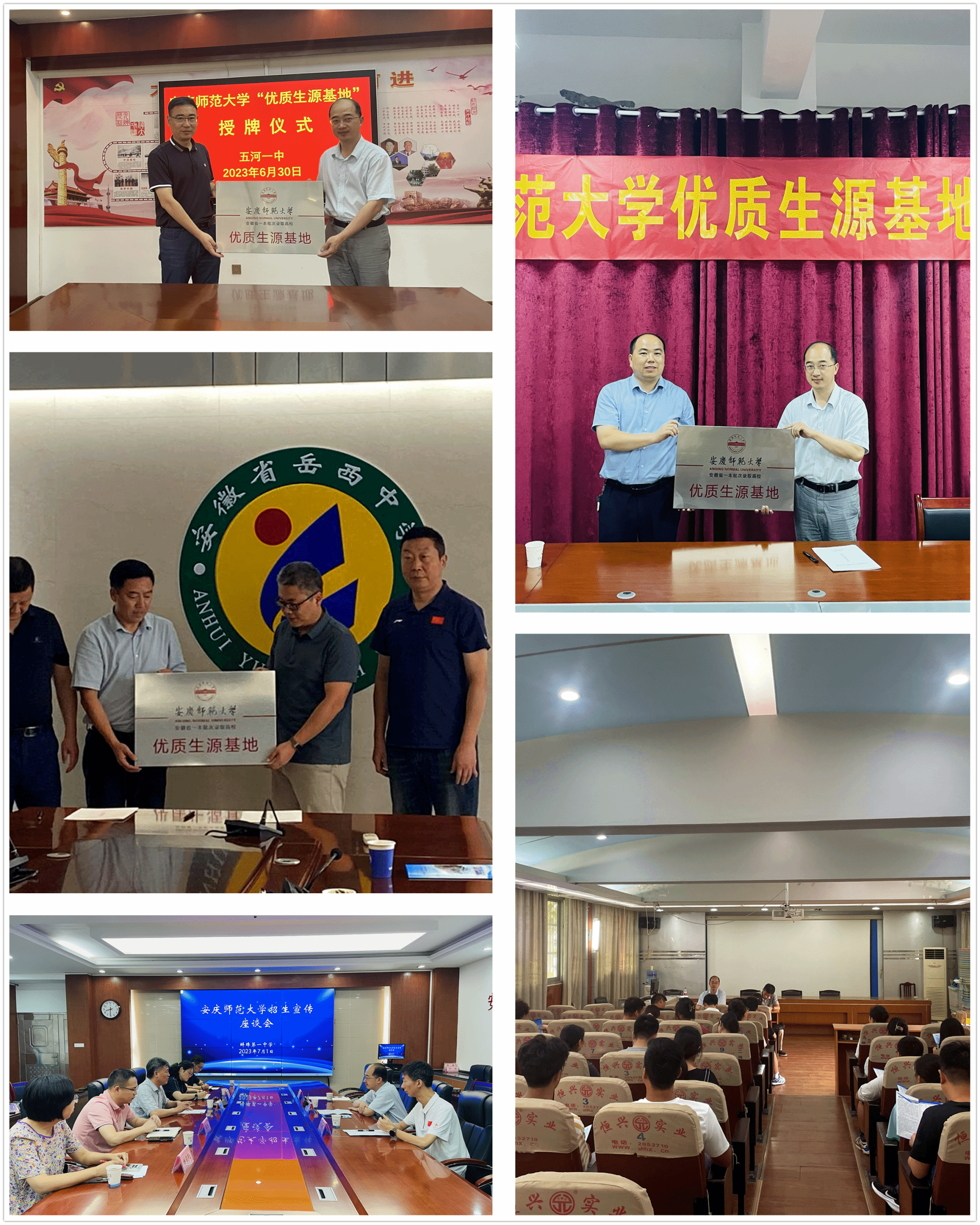 招生宣传组一行分别与五河第一中学、固镇县毛钽厂实验中学、安徽岳西中学签订优质生源基地的合作协议并授牌,回访了安徽省蚌埠第一中学。学院相关负责人分别向4所中学详细介绍了学校办学历史、办学条件、学科建设、专业特色、人才培养等基本情况,解读了今年的招生政策,尤其是介绍了伟德国际victor·1946源自办学情况。4所中学相关负责人对学校办学水平和人才培养质量予以高度肯定,对学校招生政策和录取要求有了更深了解,并表示将会组织、动员符合条件的优质生源积极报考,到大学进一步深造发展。招生宣传组在五河第一中学召开了招生宣讲专场,耐心细致地向考生和家长们解答每一个问题,鼓励广大考生积极填报我校。