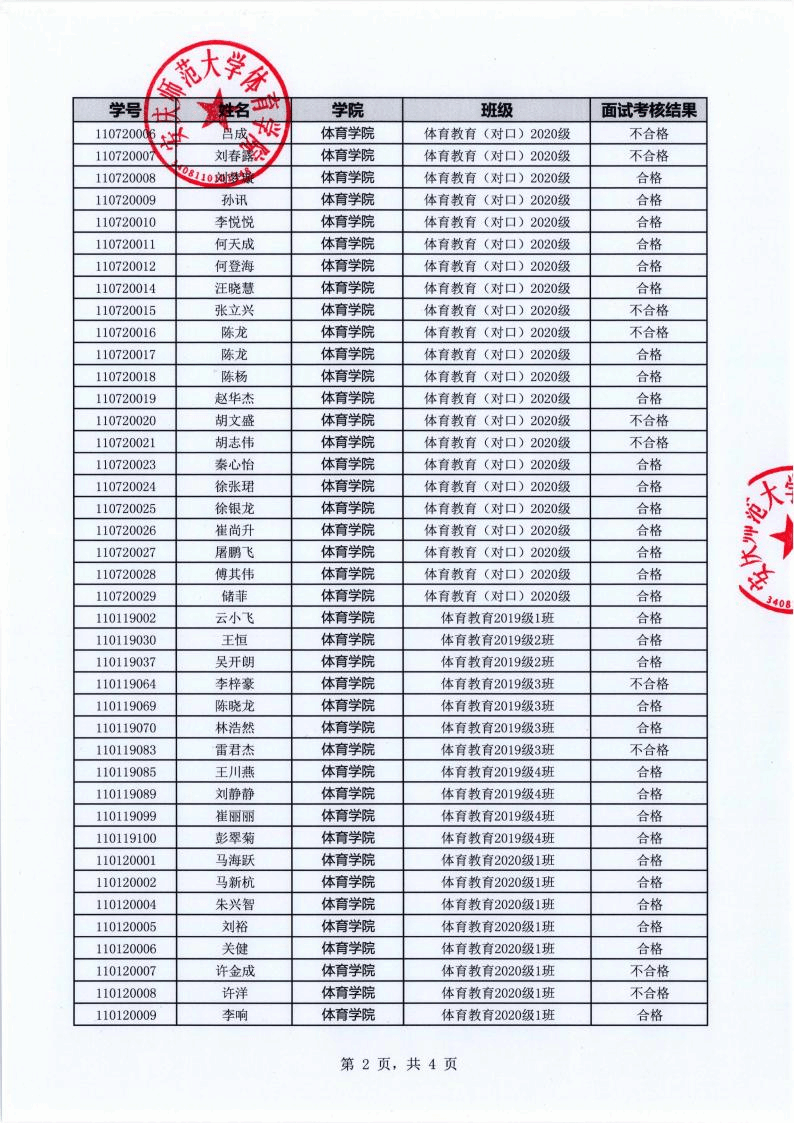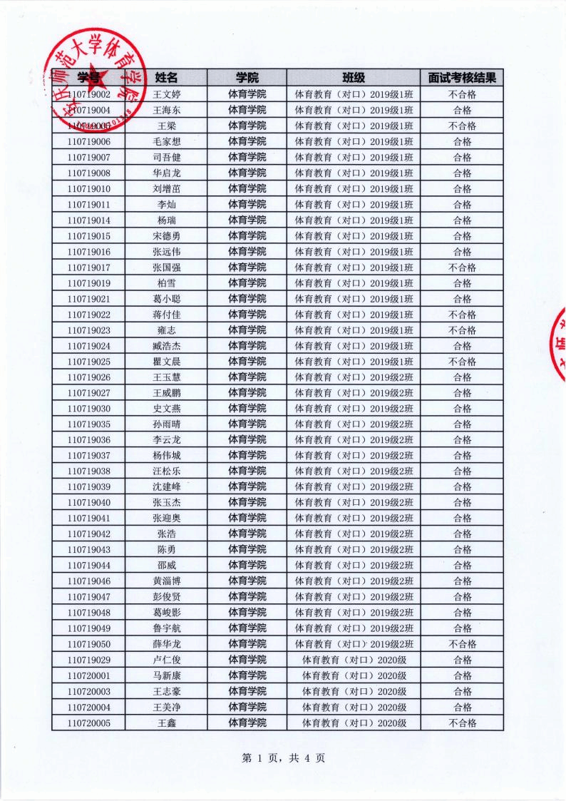 bv1946伟德2023年上半年师范生教育教学能力考核面试(体育与健康)成绩公告