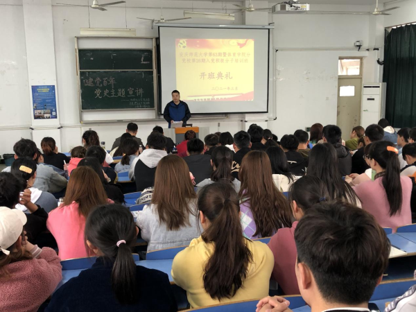 他强调,2021年是中国共产党成立100周年,也是“十四五”规划开局、开启全面建设社会主义现代化国家建设新征程之年,在全国上下认真学习习近平新时代中国特色社会主义思想,认真学习贯彻党的十九届五中全会精神,深入开展党史学习教育之际,学院召开本次积极分子培训班,希望同学们努力做到:一是端正态度,充分认识举办入党积极分子培训班的重要意义。它是入党积极分子熟悉和掌握党的基本知识、基本理论的需要;是入党积极分子端正入党动机,提高思想政治觉悟的需要;是严格党员发展程序,提高党员发展质量的需要。二是明确举办入党积极分子培训班的目标。通过培训要深刻认识和了解党的性质、宗旨、任务、党员的权利和义务;进一步提高自身思想素质,坚定共产主义信念;努力做到组织上入党,更重要的是思想上入党。三是率先垂范,严格遵守培训班的各项规章制度。要严格要求自己,强化组织纪律观念,成为执行各项纪律的楷模。