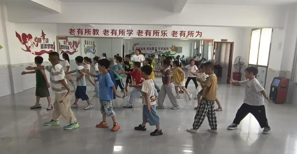下午,趣味太极拳课程成为教学亮点。团队中体育教育专业的学生凭借扎实的专业功底,向学生们完整展示了24式简化太极拳的经典套路,并进行了耐心细致的分步教学。一招一式间,传统武术的魅力深深吸引着学生们,大家纷纷认真模仿、积极练习。在短暂的休息调整后,团队成员们又投入到最后一项课程——作业辅导中。支教学生们耐心地为学生们答疑解惑,帮助他们攻克暑假作业中的难题,现场学习氛围浓厚。