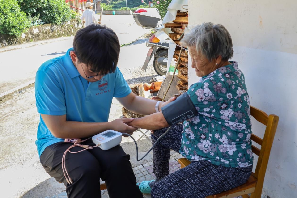 “测量一位独居老人血压时,血压有点偏高,儿女又不在身边,让我尤其触动。”运动康复专业2024级陈昊分享,在测量时由于方言不通,交流有些许困难,肢体动作让他们最终与老人建立联系。“与村民建立信任并培养感情,能够提高测量血压的准确性和效率。”陈昊说到。