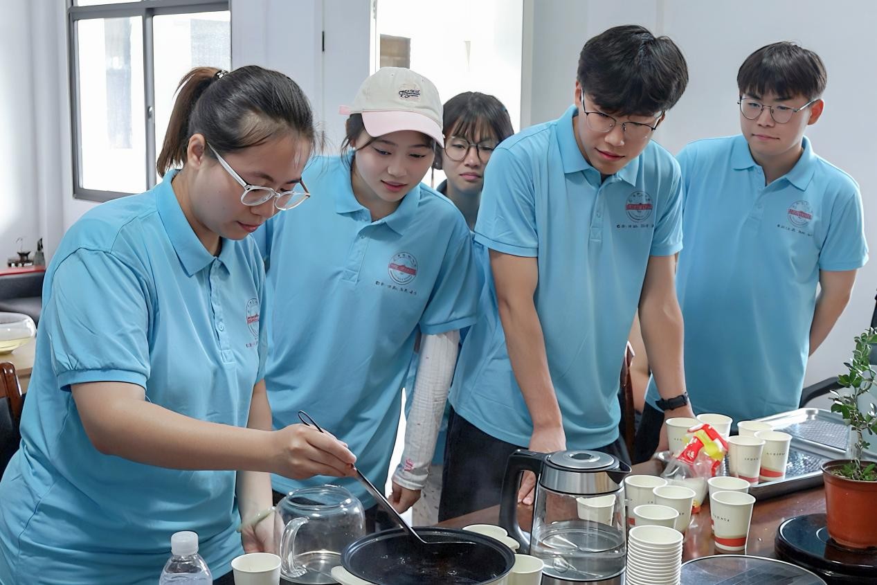 早在6月,实践团队在活动筹备阶段构思时,通过深入了解当地气候与村民需求,就决定将传统消暑饮品酸梅汤作为服务载体。从乌梅、山楂、桂花等食材的采购,到反复调试熬制火候与口感,成员们做足准备,力求为村民呈现最地道、最可口的酸梅汤。“我这里有锅和充电线,大家就在我办公室里开始吧!”驻村第一书记张军得知学生们的计划,热心给予帮助,提供锅具与场地。