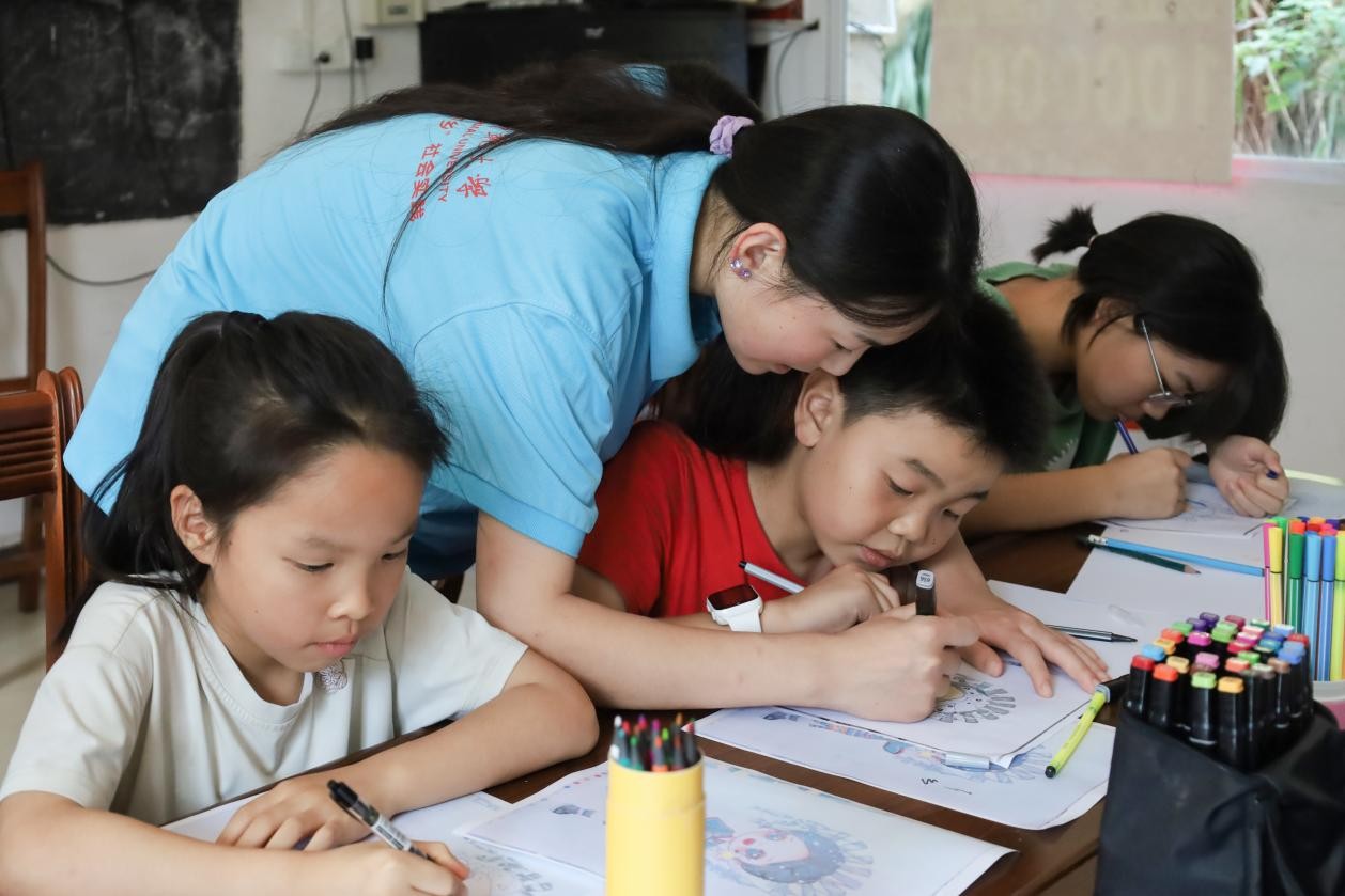 实践团成员协助时,听到最多的就是“老师,这样涂好看吗?”“我想让她的衣服像彩虹一样”,孩子们充分发挥想象力,用纯真视角在原有特色基础上赋予黎族服饰新创意。“活动过程也在激发小朋友的创造力,让他们了解不同艺术和黎族服饰的特色,增强小朋友对‘美’的更多认识。”金继芳说到。
