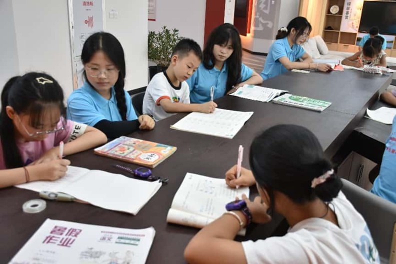 站点集“党群服务、儿童关怀、公共文化”功能于一体,成为高校实践与基层治理融合的重要纽带。宣城市已连续四年搭建大学生“三下乡”实践平台,今年的启动仪式更在广德市举行。从2020年首次合作时仅1支团队,到如今10所高校接力参与,宣城市“三下乡”平台已形成“高校专业资源+社区实践需求”的精准对接模式,校地资源联动效应持续扩大。长期驻守站点的滁州学院小学教育专业2024级刘婷婷、王谭昳睿,见证了高校力量与社区服务的融合:“安庆师大的同学们带来了新的体育教学和康复理念,我们一起备课、讨论,课程也更丰富、更有吸引力。”